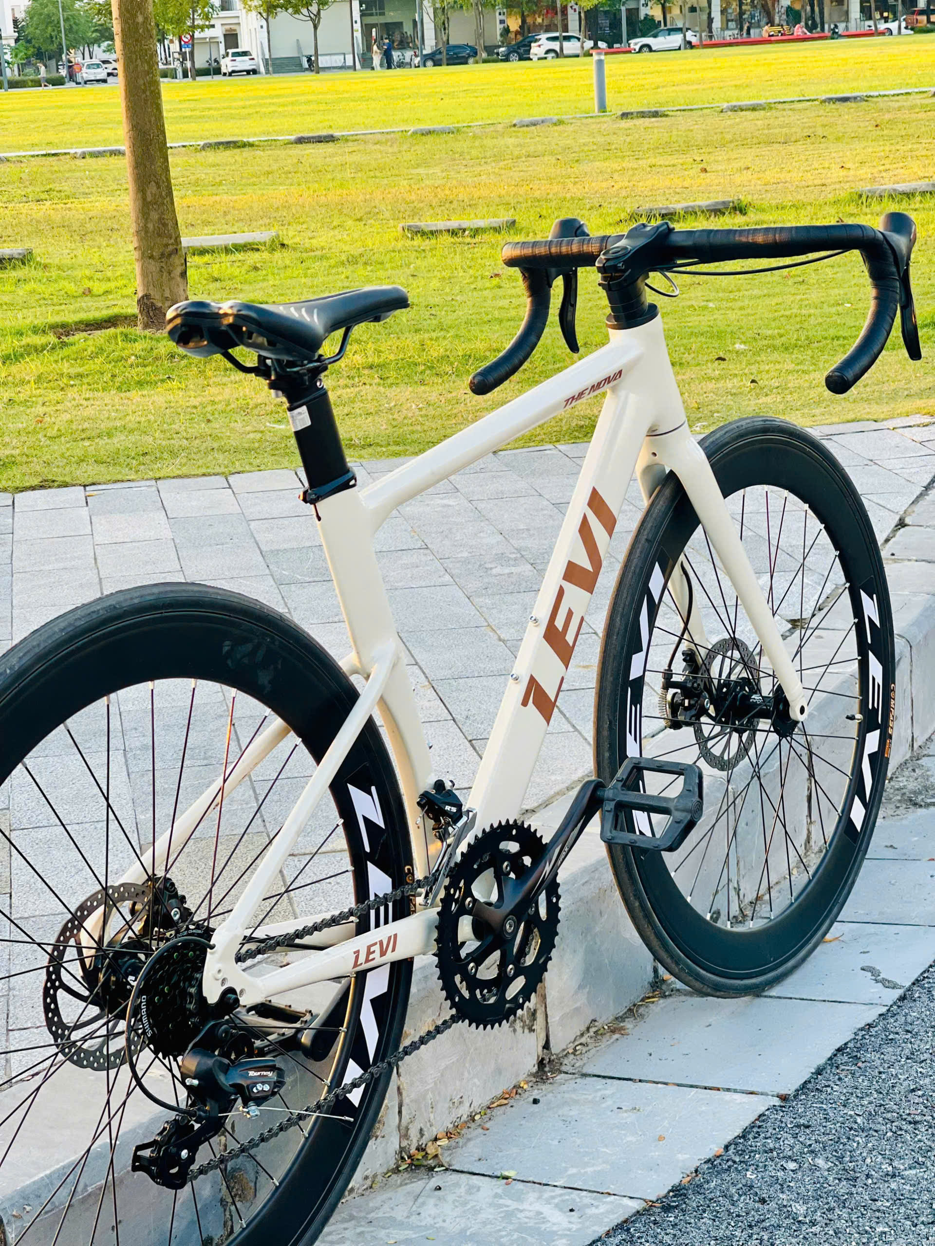 The Nova – LEVI là mẫu xe road dành cho người yêu tốc độ, sở hữu khung nhôm không mối hàn cứng cáp, dây đi âm gọn gàng và bộ truyền động Shimano A070 2×7 mượt mà. Xe trang bị phanh đĩa an toàn, vành bạc đạn ổn định và lốp Ineed Latte 700×25C cho khả năng bám đường vượt trội. Đây là lựa chọn lý tưởng cho người mới chơi lẫn tay đua phong trào muốn nâng cấp hiệu năng trên đường trường.